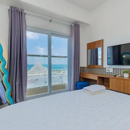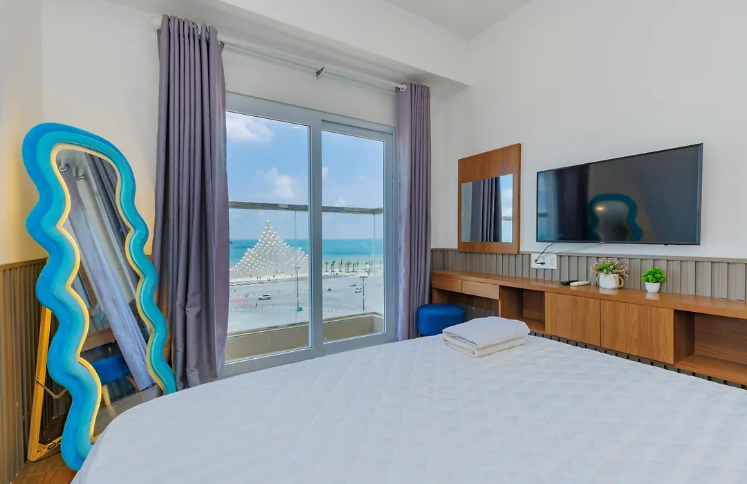 A kitchen with an electric kettle, a fridge, and a cooktop is available as part of Mermaid Seaview Sat Thap Tam Thang - Blue Homestay's self-catering amenities. This apartment offers access to a spa salon, ensuring added relaxation.